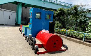 乗り物に囲まれ、どれに乗ろうかと心がはやる東調布公園。これはもはや、公園という名の乗り物博覧会である。