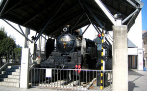 徳殿公園は見どころがいっぱいの公園です!目を引くのは大きく青い機関車。客車にはベンチが設置されていて、ちょっと一息つきながらまるで列車の旅気分も味わえます。