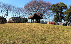 富士前公園は、丘の上にそびえる大きな木が印象的な風景が魅力的です。その美しい景色の中で、アスレチックや滑り台を楽しむことができます。