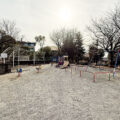 すすき野第3公園は扇形パーゴラに丸い砂場、そこにスプリング遊具。