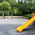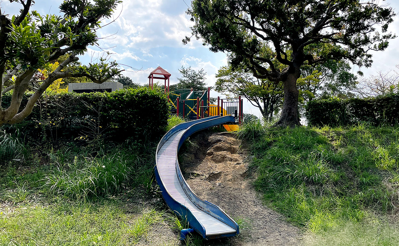 鮮やかな黄色の複合遊具が目を引く南黒川第一公園は、まるで夢の中にいるかのような非日常の空間です。その複合遊具にはワクワク感がいっぱい詰まっており、特に後ろから飛び出すローラーコースターは驚きと興奮を呼び起こすことでしょう。
