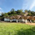 あざみ野三丁目東公園は自然と石の融合したスペースです。バス通りから緑の中に歩いて行くと石の机とベンチでゆっくり憩えます。