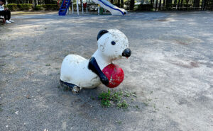 小室北公園は、ユニークな動物たちと自然が調和する楽しい公園です。パンダやペリカンの遊具が並ぶ中、子パンダの姿には「本当にパンダ?」と首をかしげてしまうかも。