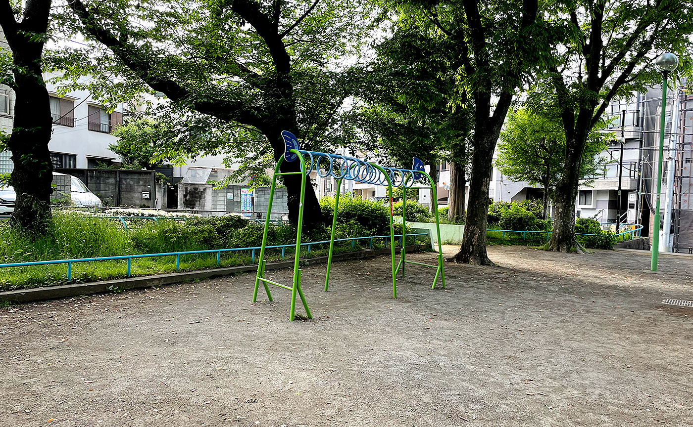 さらに、公園にはブランコや鉄棒など、さまざまな遊具が設置されており、子供たちの遊びの幅が広がっています。また、フェンスが付いたグラウンドが公園の下に広がって完全分離。親は安心して子供たちを遊ばせることができます。動坂公園は家族みんなで楽しめる場所となっています。