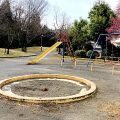 大船久保田公園ではグラウンドが主役です。滑り台とスプリング遊具は端っこででしゃばらず。 ……