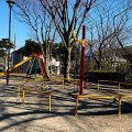 朝日ヶ丘竹公園はがっちりとした地球儀遊具があります。通常くるくる回るのですがここは固定で設置され回らせません。他には滑り台やブランコを楽しめます。