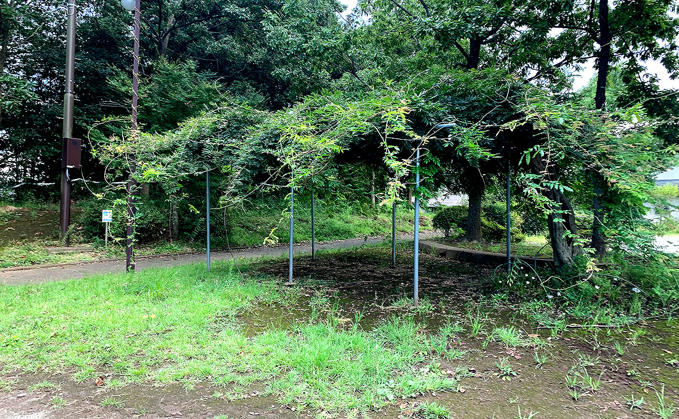 では複合遊具で楽しめます。雲底部分の地面は砂なので安全に楽しめます。コンパクトな砂場、細いパーゴラなどが楽しめます。