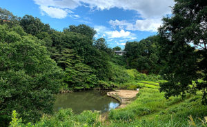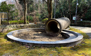 清水公園は和風庭園風の中にアートあり、池あり、橋ありの贅沢な風景が続きます。遊具エリアは普通の遊具達が集まっていますが緑が敷き詰められたきれいなスペースです