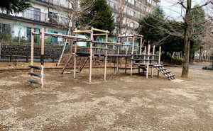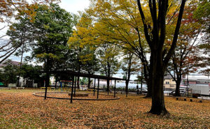 城山手もみじ公園、なかなか広いスペースはパーゴラでグラウンドと遊具エリアを分けています。