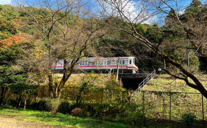 落合公園は終点高尾山口駅前に 通過する公園で綺麗な景色の トレインビューが楽しめます。