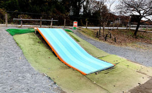 堀之内番場公園は全体が芝生の贅沢な公園です。滑り台など遊具も芝生の上にあります。