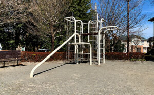 城山手にれの木公園では白いきれいな複合遊具を楽しめます。