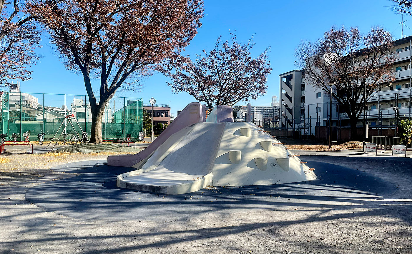 東砂一丁目公園に足を踏み入れると、まるで時代を超えた冒険が始まります。鮮やかなパステルカラーの山型遊具は、ただの遊具ではありません。そのしっかりとした階段を一歩ずつ上ると、まるで見晴らしの良い丘に登るような感覚に包まれます。