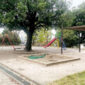日向公園は、その名のとおり光を集めるように、遊びと緑が心地よく配置された公園である。滑り台、ブランコ、砂場、スイング遊具がきちんと寄り添う遊具エリアは、子どもたちの時間が自然に流れ出す小さな舞台だ。