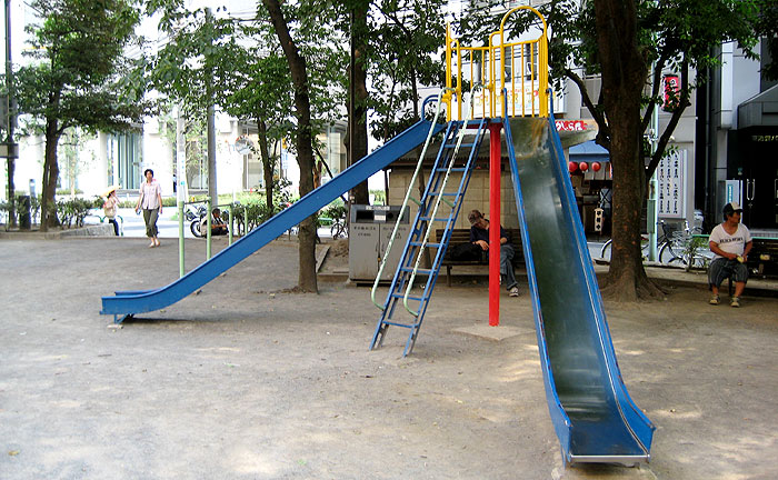 日出町公園は、池袋の中心にありながら、都会の喧騒を忘れさせる癒しのスポットです。公園内には心地よいせせらぎが流れ、その前に置かれたオブジェが優雅な雰囲気をさらに引き立てます。
