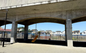 矢野口宿三谷児童公園は、南武線の高架という現代的天蓋のもとに、小さな遊び場を守り続けている。滑り台とスイング遊具は雨にも負けず、列車の律動をBGMに、日々の冒険を繰り返す。高架の外に目を向ければ、鉄棒...