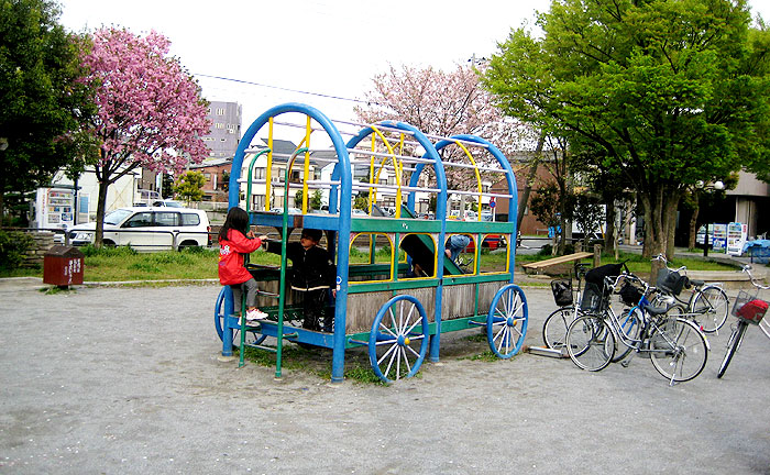 入谷中郷北公園では、幌馬車滑り台を楽しむことができます。まるで西部劇の世界に迷い込んだような雰囲気を楽しめる滑り台は、子どもから大人まで幅広い年齢層に人気です。