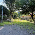 木倉児童遊園は自然がイキイキしすぎる感じで、砂場やベンチが緑に埋れます。