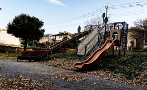 森野2丁目児童公園はカラフルな複合遊具が目玉。