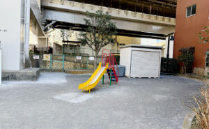 六本木三丁目児童遊園は六本木のど真ん中にある公園です。全体が斜めっているのでケーブルカー気分で楽しめます。