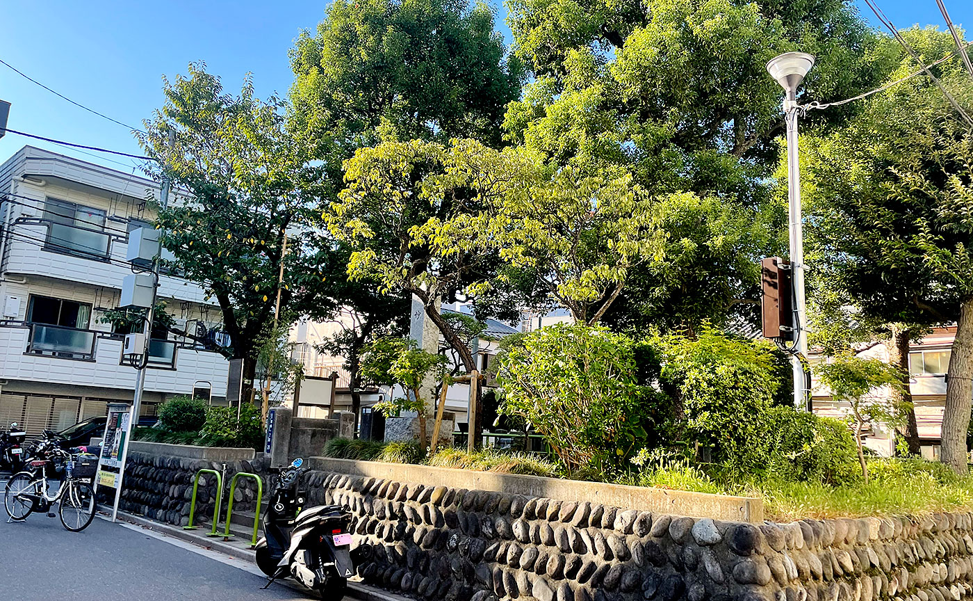 ここには妙亀塚が鎮座している。都指定旧跡として長い時を見つめてきたこの塚は、一体どのような秘密を抱えているのか? それを考えながら、周囲のベンチでのんびりと過ごすのも一興である。木漏れ日が揺れ、吹き抜ける風がかつての物語をそっと囁く。
