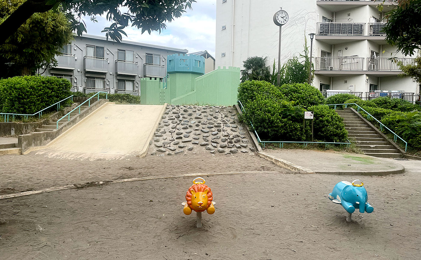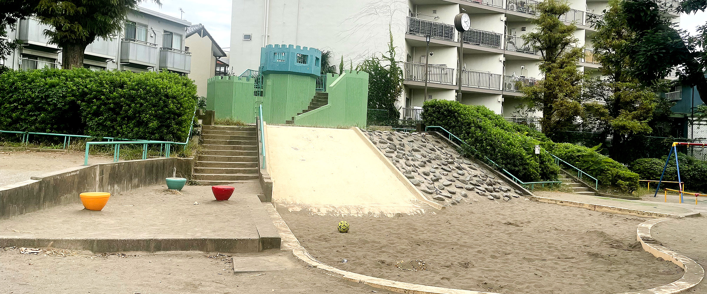 貫井公園は、団地の前にそびえ立つ「緑の城」がいい雰囲気を漂わせます。目を引くのは広々とした滑り台。子どもたちはもちろん、大人も思わず滑りたくなるスケール感があります。公園全体を見渡せる展望パーゴラは、落ち着いたひとときを過ごすのに最適なスポット。また、色鮮やかな複合遊具も設置されており、さまざまな年齢層が楽しめる空間です。