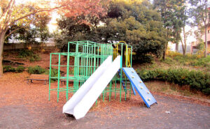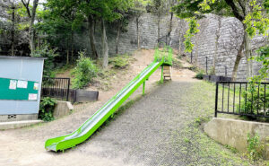荻久保公園は、山を駆け抜けるスライダーが特徴的な公園です。このスライダーは子供たちの大好きな遊具で、一日中楽しむことができます。
