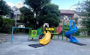 お寺の中にある公園なのであまりはしゃげない空気があり シーソーをカラフルにするのが精一杯