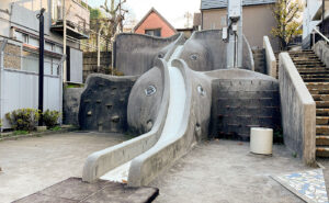 竹早公園は、冒険心を刺激する大きな滑り台が魅力の公園です。スペースいっぱいにそびえ立つ滑り台は、石垣をよじ登ってから滑り降りるというワクワク体験が待っています。