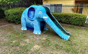 入り口の階段からもう少し子象が見えてしまう金井子象児童公園。そこは象とたぬきとウサギが楽しむ庭でした。