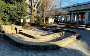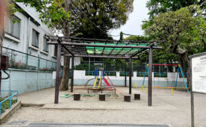 代々木深町小公園は、都会の中にありながら、長いパーゴラの下でのんびりとくつろげる憩いのスポット。遊び心あふれる複合遊具やブランコも充実していて、子どもも大人も楽しめます。