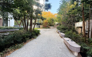 北参道ふれあい公園は、都会の隙間にひそやかに延びる、思索のための散歩道である。足元は端正に整えられ、余計な主張を排した舗装が、歩く者の呼吸と歩幅を自然に整えていく。