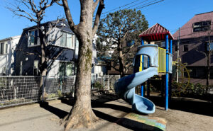 駒込公園は、新しい複合遊具が明るく広がり、懐かしい山型遊具が静かに佇んでいます。子供たちは新しく作られた遊具で活気にあふれ、山型遊具で思い出深い遊びを楽しむことができます。