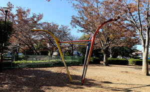 金井宮谷ツ公園に足を踏み入れると、まず視界にひっかかるのは、緑の濃さである。木々も草も遠慮を忘れ、気づけば公園全体がやや過剰なほどの緑に埋もれている。その奥にひっそりと、デザイン・スプリング遊具三銃士...