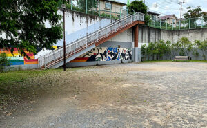 金井池田公園は調整池公園です。なので周りには高い壁が、上の出入り口からは大きな階段がありその下には壁アートが。 続きは金井池田公園 | 町田市公園探訪でどうぞ