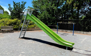 行船公園では、大きな山型滑り台が主役で、子供たちはスケールの大きな遊びを楽しむことができます。