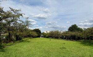 “京王の街”聖蹟桜ヶ丘、その名前を冠したせいせき公園は、静かな憩いの場。ここには遊具はありません。