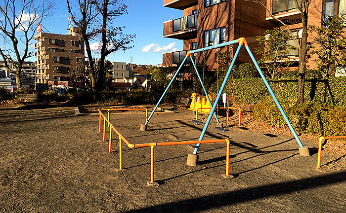 滝の上公園は斜めに展開する芝生エリアが目玉です。上のエリアにはブランコやらくだんで楽しめます。