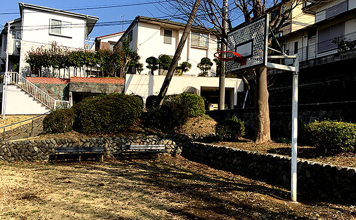 公園の隅には、ケヤキがそびえて影をつくっていますが、広場は、草が広がってポカポカと日当たりがいいです。 (緑のパークシティ「多摩」:多摩市制20周年記念誌)