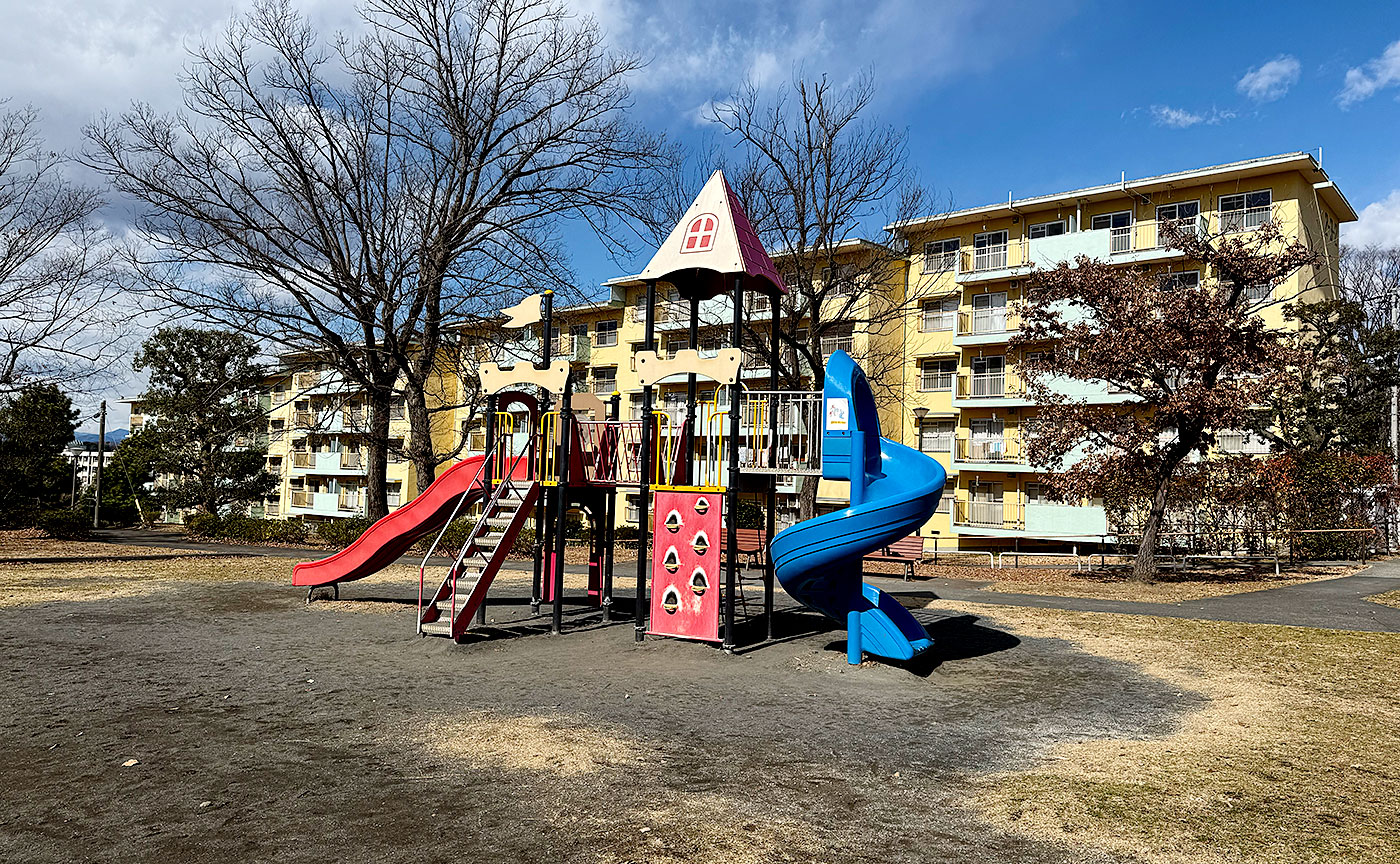 永山第2公園は丘を中心とした緑のエリア、階段を降りてくる優雅さを持つ遊具エリア。エリ…… 続く