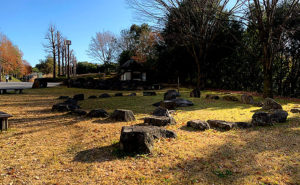 柳沢の池がメインの柳沢の池公園 なだらかな傾斜に大きな石がごろごろ 砂場やネット遊具などで楽しめます