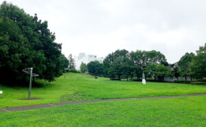 上柚木公園はいくつもの児童遊園を取り込み、広場、ソフトボール場、芝生の丘、展望台、陸上競技場と鉄棒から競技トラックまでの総合商社なスケールの公園です。